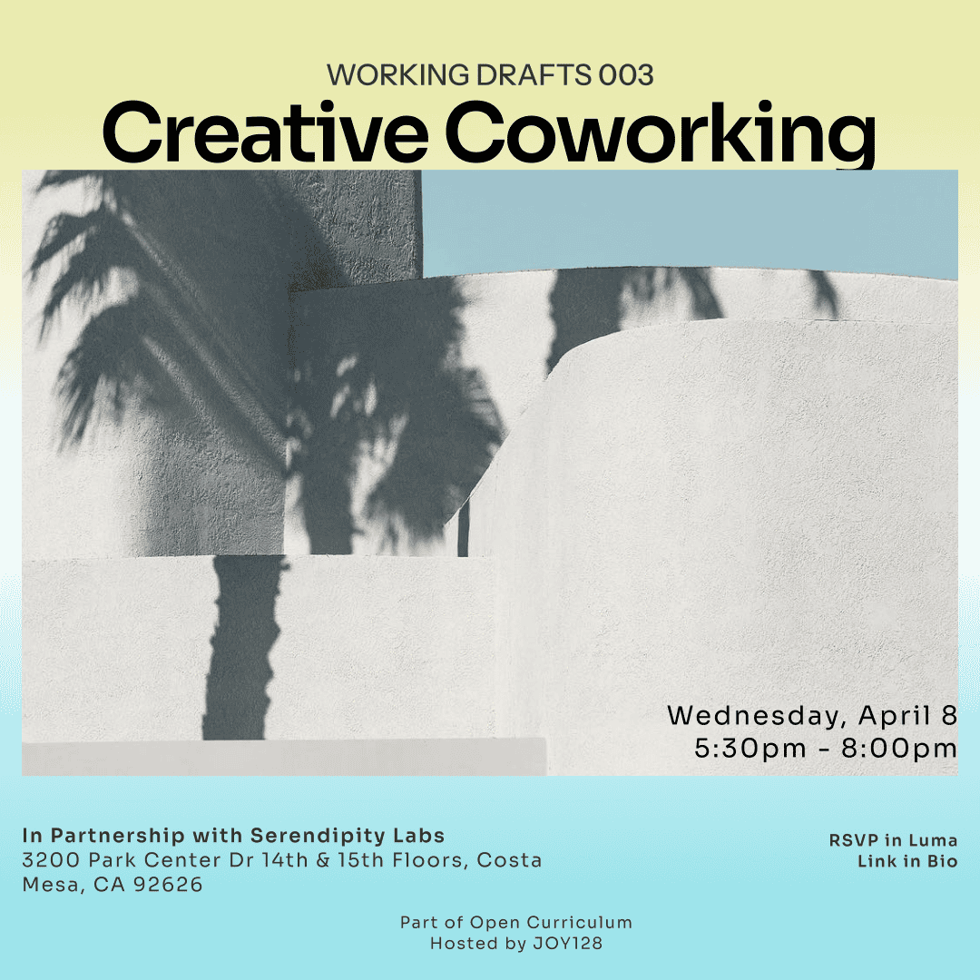 📝 Working Drafts is a twice-a-month creative coworking session for anyone who needs dedicated time, good energy, and a room full of people working on their projects to get unstuck or make progress.